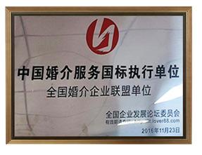 2016年獲得“中國婚介服務(wù)國標(biāo)執(zhí)行單位-全國婚介企業(yè)聯(lián)盟單位”許可